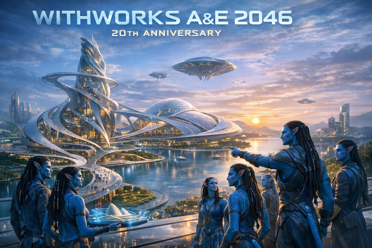 PART 1. 우리가 만든 20년: 혁신의 발자취와 감사의 기록안녕하세요, 위드웍스입니다. 비정형 건축의 불모지나 다름없던 국내 건설 환경에서 위드웍스가 걸어온 지난 20년은 '불가능을 가능으로 바꾸어온 도전의 기록'입니다. 2007년 설립 이후 'Digital Architecture Leader'라는 슬로건 아래, 위드웍스는 난해한 곡면과 복잡한 구조로 인해 도면 속에만 머물러 있던 상상들을 최첨단 디지털 엔지니어링 기술로 현실화하며 대한민국의 도시 경관을 바꾸는 혁신적인 랜드마크들을 탄생시켜 왔습니다.이러한 지난 20년의 성과를 기념하고, 이제 다시 마주할 또 다른 20년의 긴 항해를 성공적으로 완수하기 위해 위드웍스 전 임직원이 한자리에 모였습니다. 이번 행사는 단순히 과거의 영광을 추억하는 자리를..
